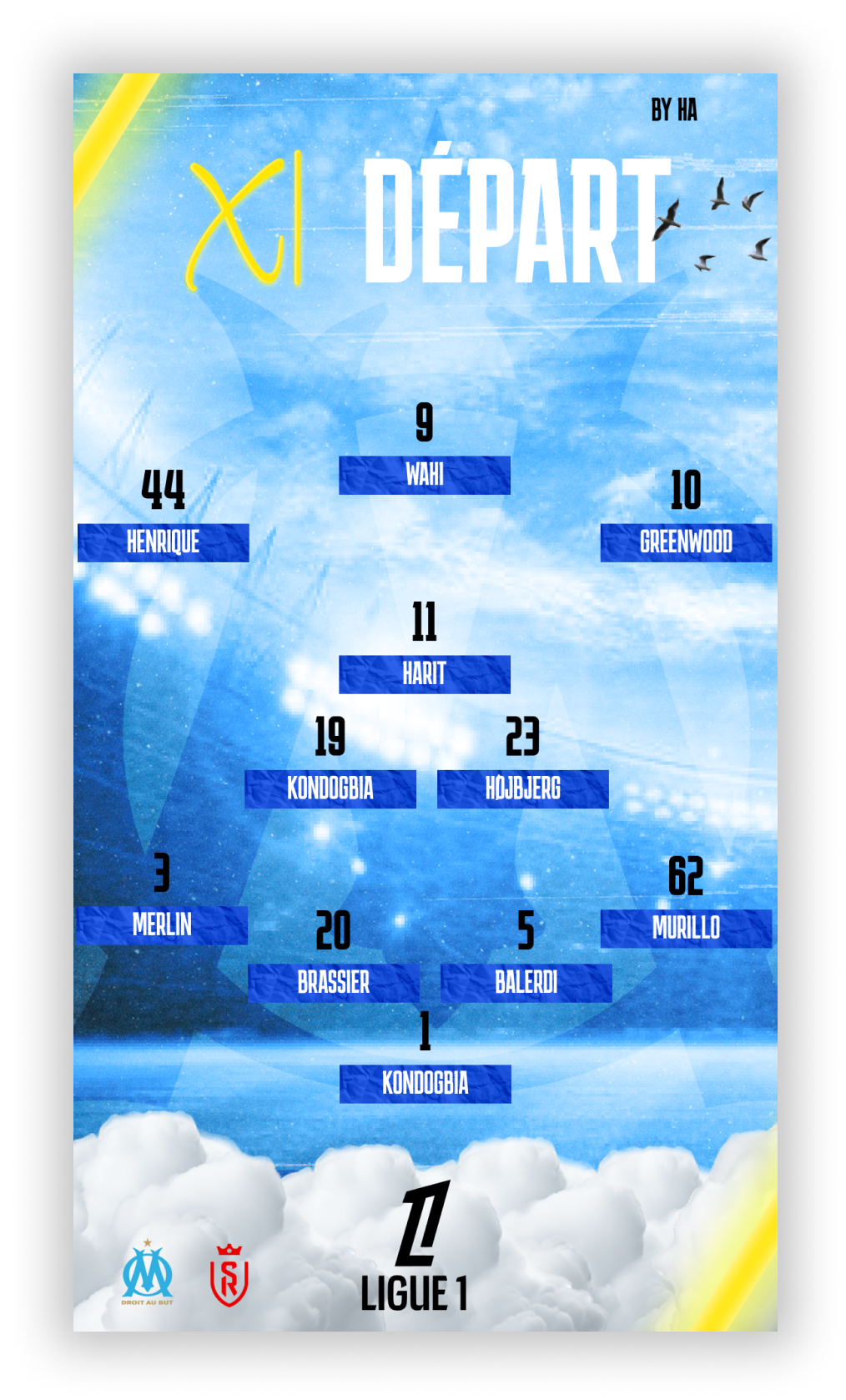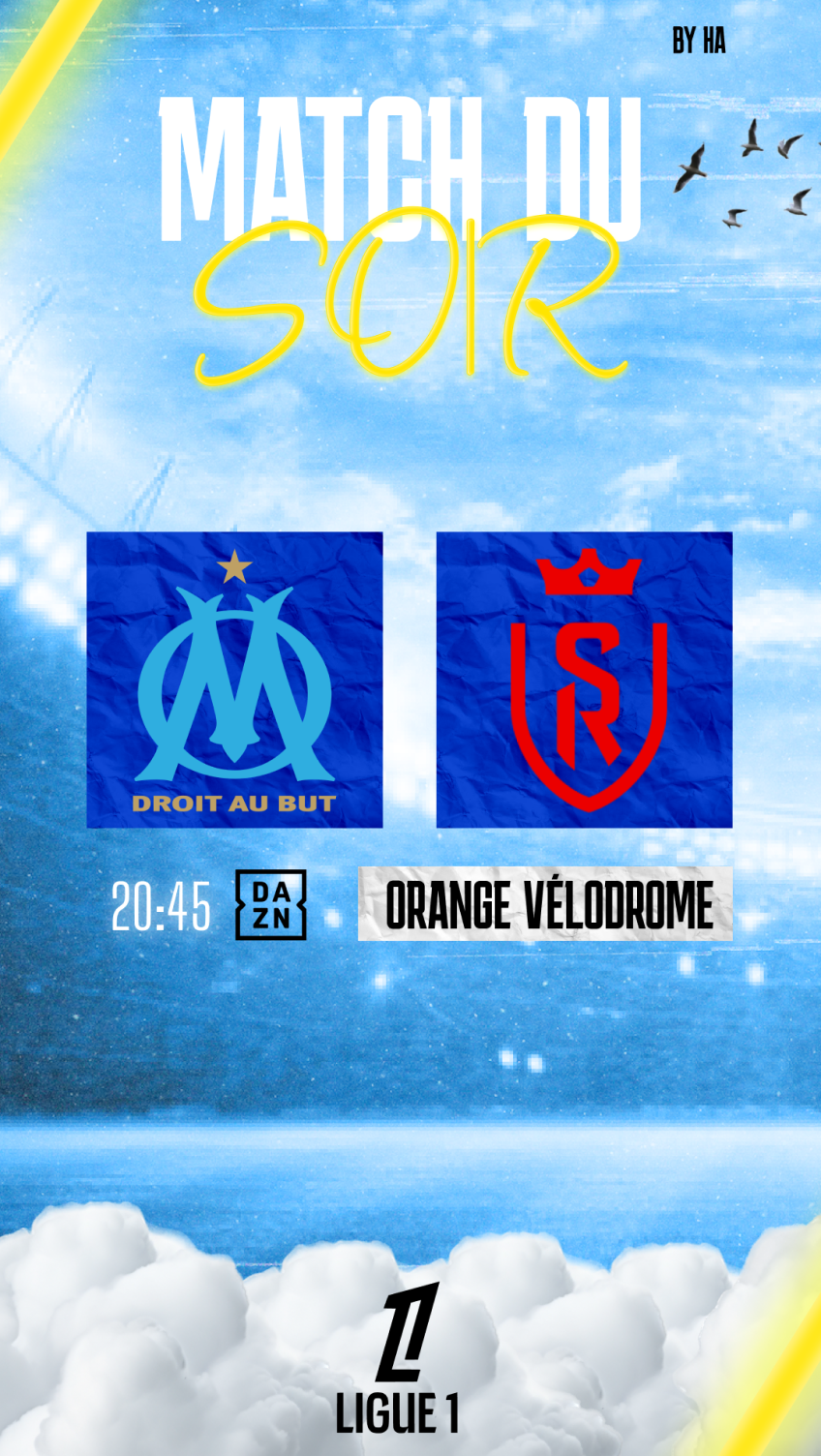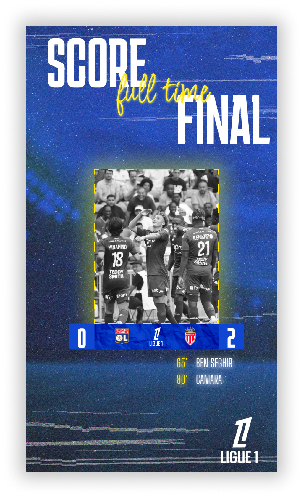 J’ai créé notamment plusieurs visuels (story : pour le compte instagram de la ligue1) que ce soit la composition d’équipe, affiches d’avant match, but en cours de match, fin de match etc… Deux thèmes utilisés un clair pour les matchs en journée et sombre pour les soirées du dimanche soir par exemple.